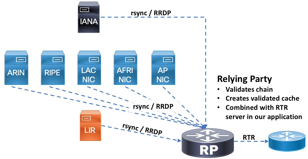 - Relying Party: Anyone who wants to utilize the RIR ROA data for authorization (You!)