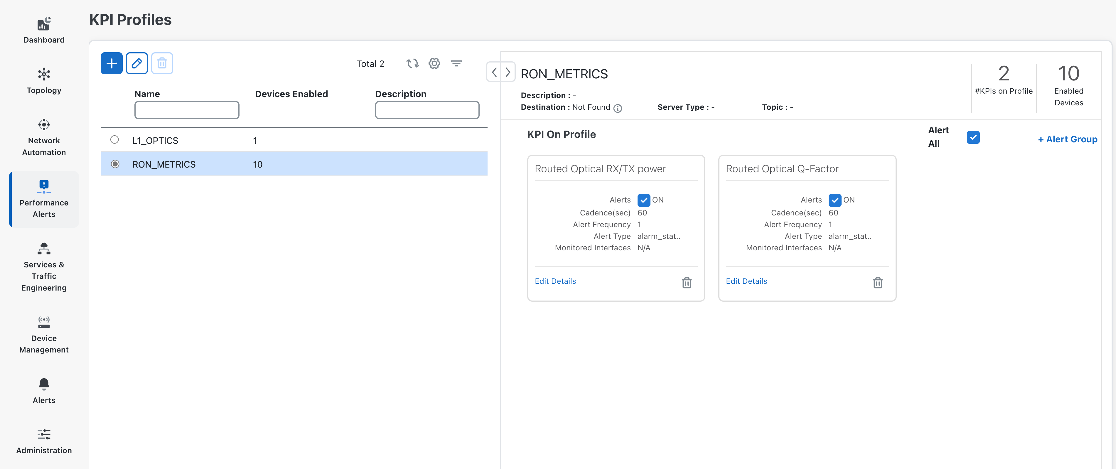 Here we see a KPI Profile being used to monitor RX/TX Power and Q-Margin which can then be applied to devices with DCO.